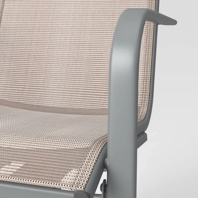 Enjoy friendly conversation and a cup of coffee in your gorgeous outdoor space with these 2-Piece Sling Swivel Patio Chairs from Room Essentials™. These swivel patio chairs are constructed from rust-resistant and weather-resistant steel material to withstand the outdoor elements. The gray frame features a slatted back for an open, airy look, with a round base that swivels and rocks to provide you with a perfect spot to kick back and chat or dine in style in your own backyard. Simply mix and match with similar items for a cohesive look that’s sure to pull any outdoor space together.